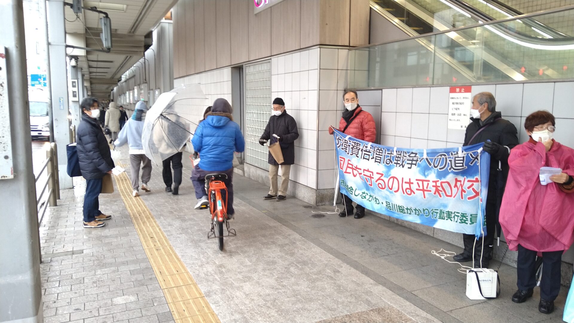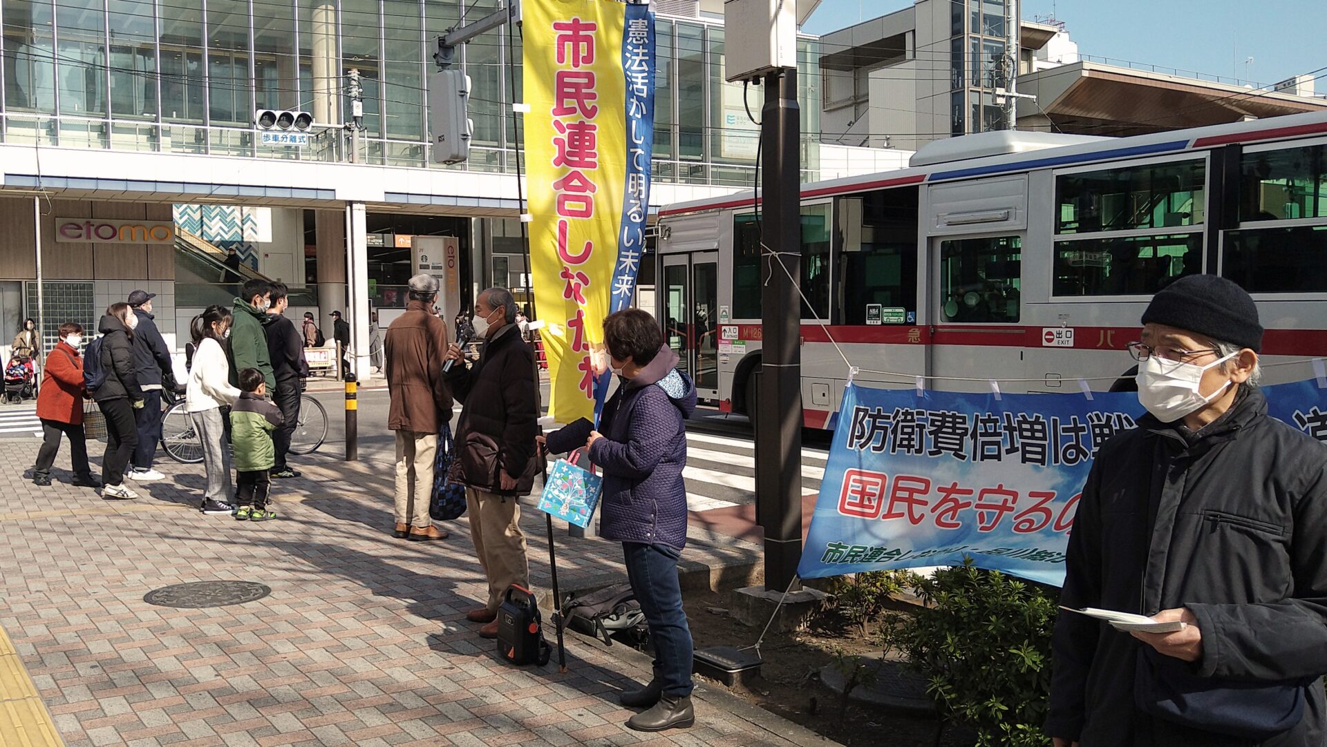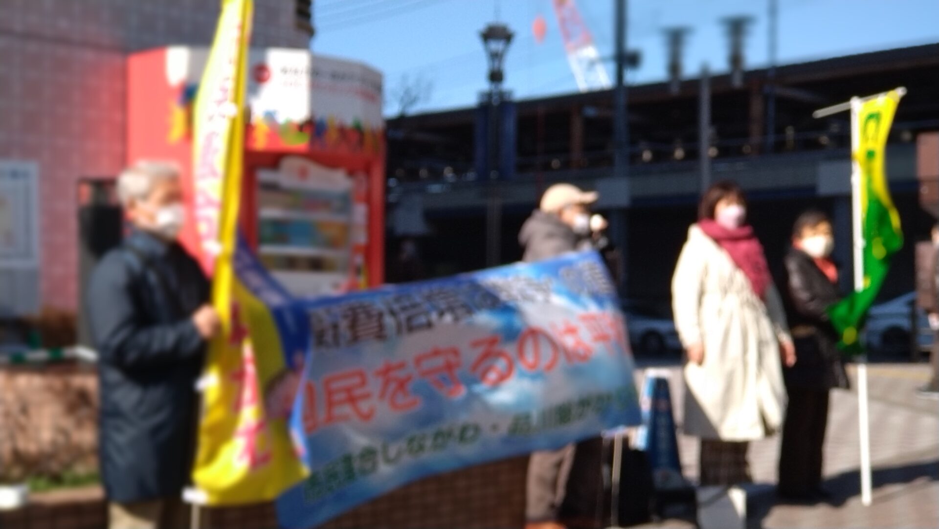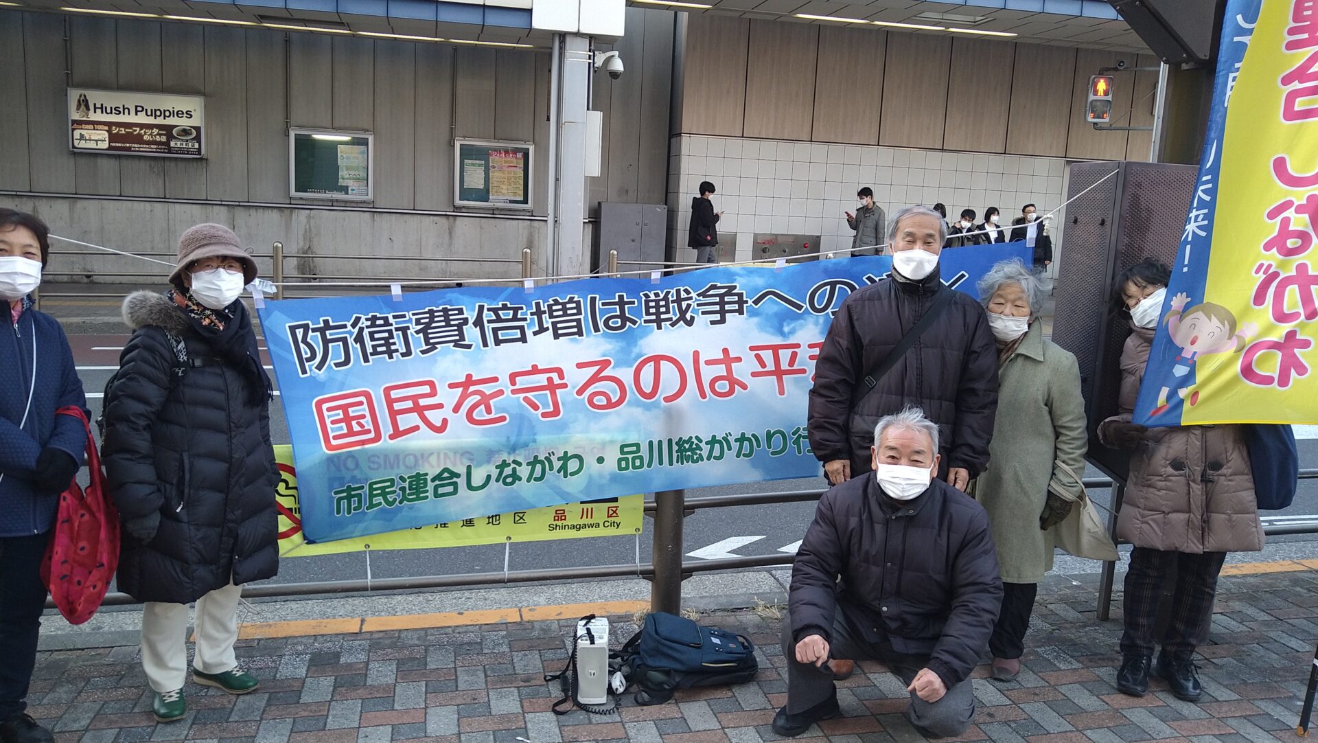 市民連合しながわでは、1月19日から大井町駅前で、敵基地攻撃能力、防衛費倍増、増税予算案を通すな!と、毎日宣伝を行っています。2月17日で30日連続となりました。 これからも続きます!